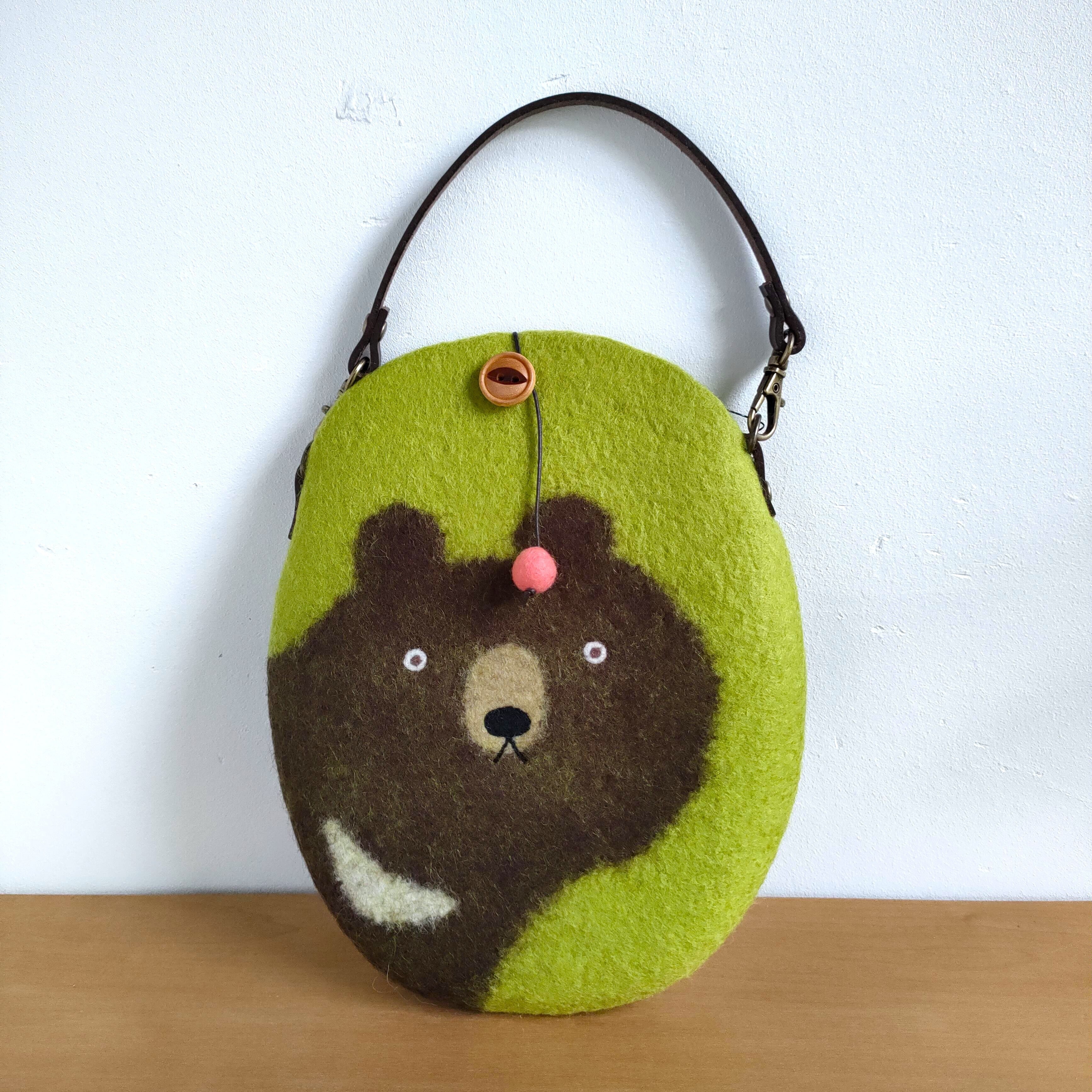 【受注制作】羊毛フェルト 丸型ミニバッグ(クマ)赤色のご注文ページです。